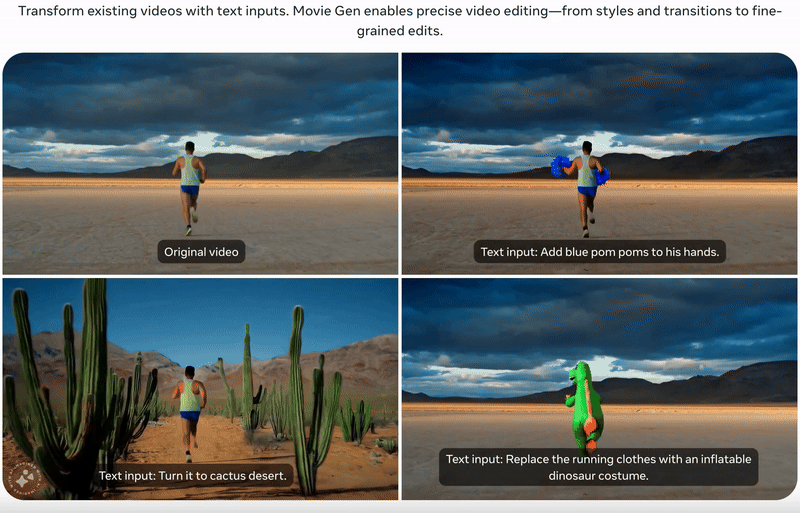 Meta introduces Movie Gen, a generative AI tool designed for media creation, including images, videos, and audio. The tool is capable of creating high-definition videos from text prompts or by editing existing footage.